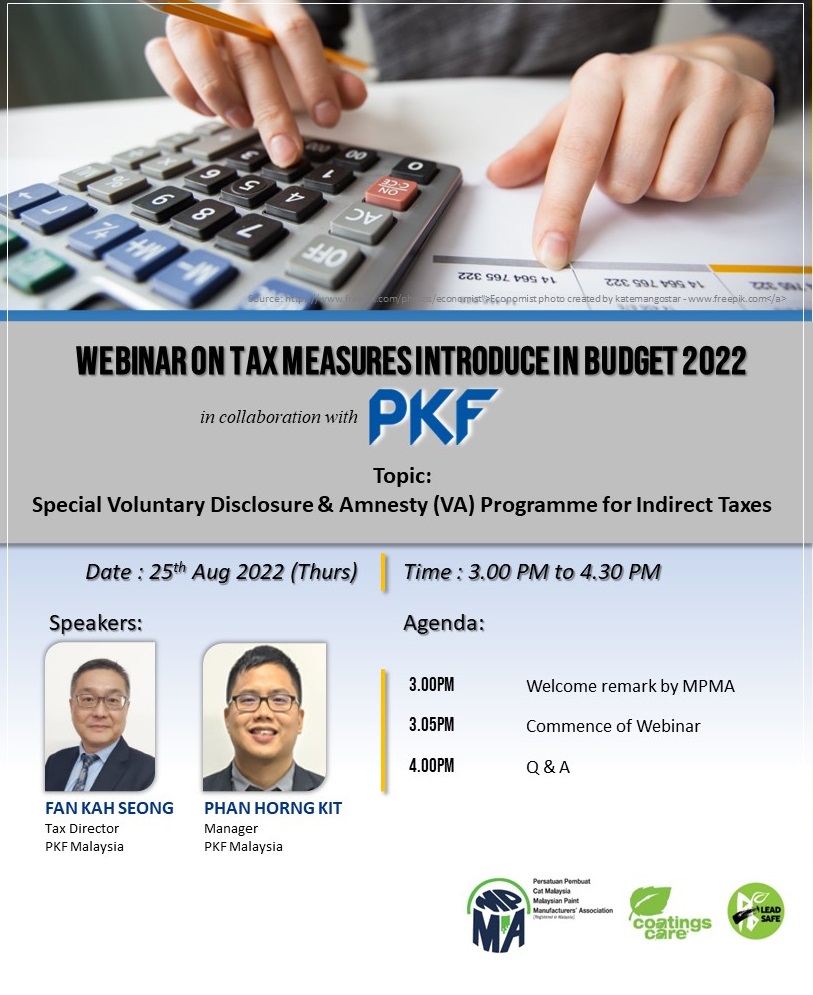 You may VIEW or DOWNLOAD the webinar information and speakers' profiles: Webinar: Tax Measures Introduced in Budget 2022: Special Voluntary Disclosure & Amnesty (VA) programme for Indirect Taxes